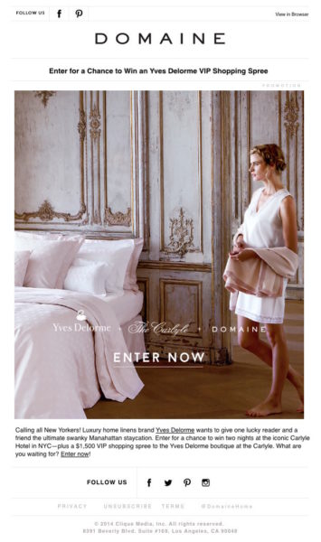 - Sweepstakes with The Carlyle Hotel hosted on mydomaine.com